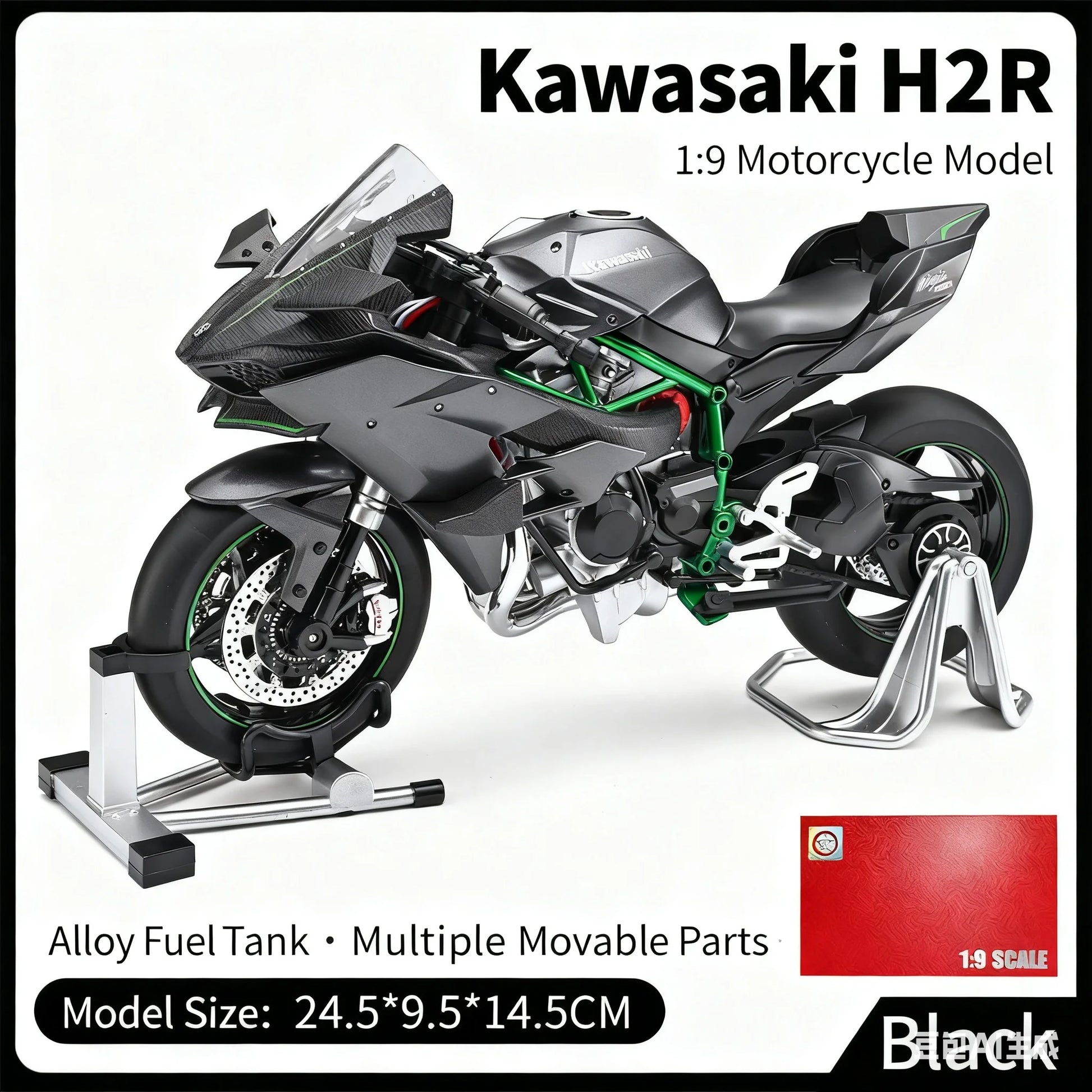 A una fracción del precio de la Kawasaki Ninja H2R real, nuestro modelo H2R 1:9 está elaborado por expertos con precisión y calidad excepcional para replicar fielmente la leyenda de Kawasaki.